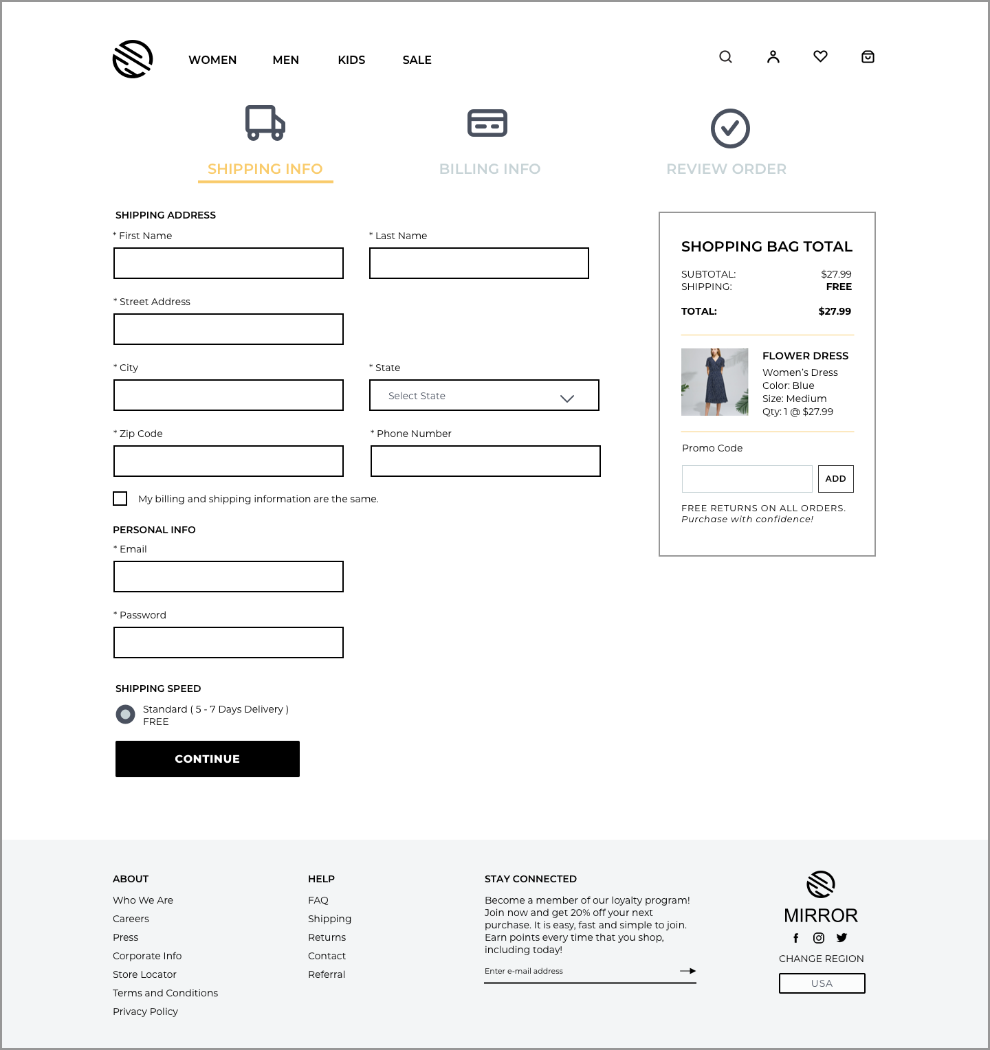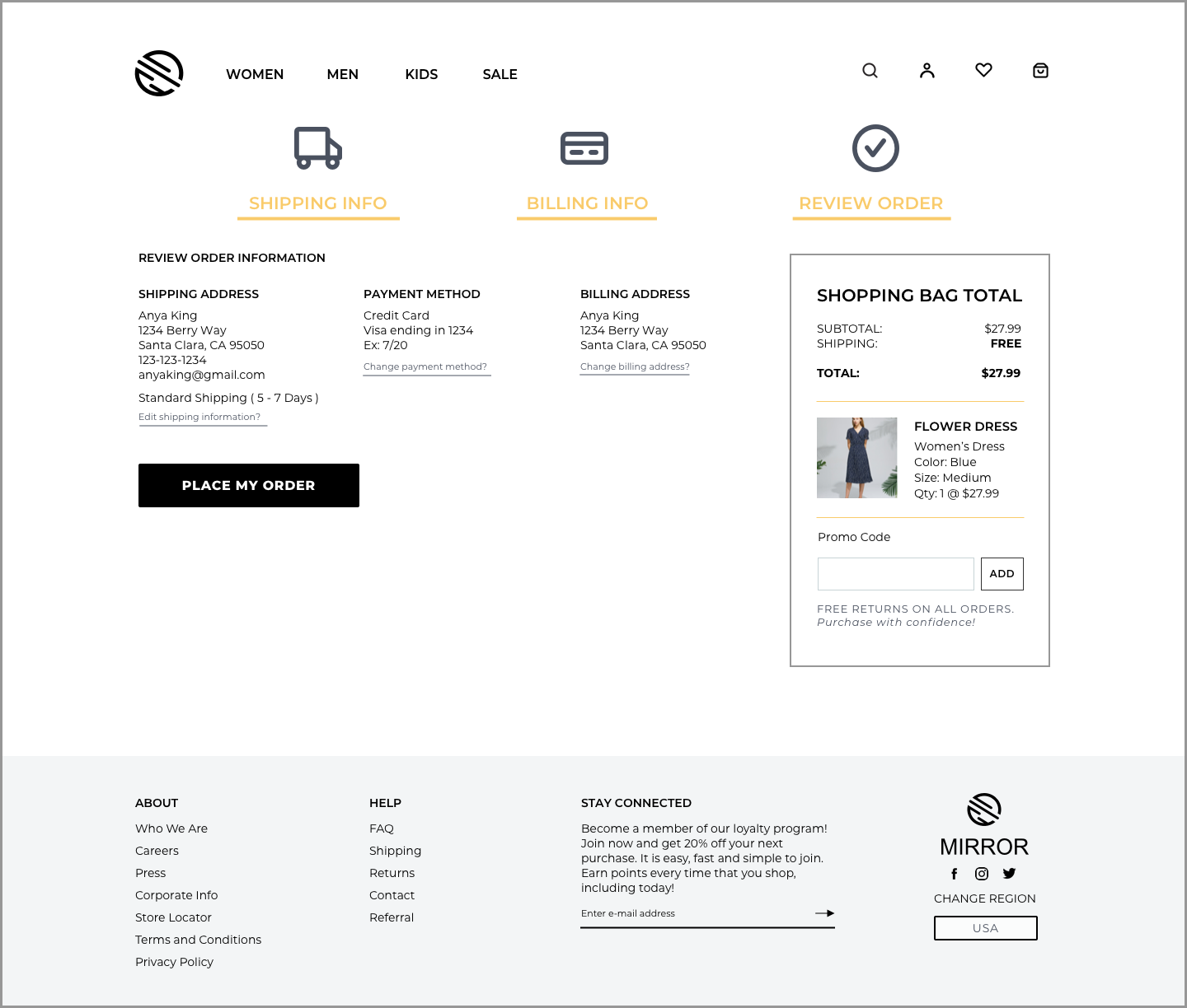 Task 3: Complete your purchase and create an account while you’re checking out so that you can save time the next time you buy something on Mirror.